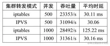 表4-2 iptables和IPVS的吞吐率与平均时延对比