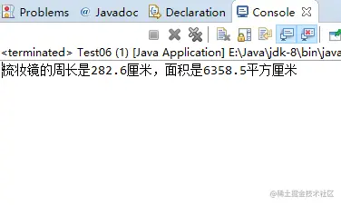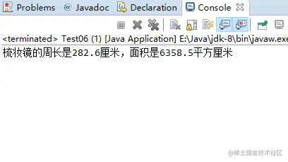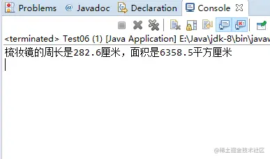 System.out.println("梳妆镜的周长是" + c + "厘米,面积是" + s + "平方厘米");