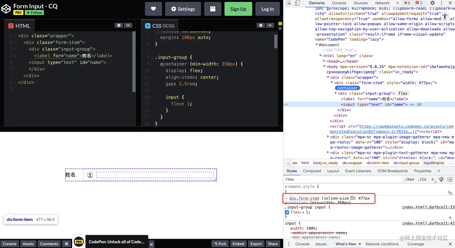 上面的代码只是简单的实现,下面就来看看 CSS 容器查询特性是如何使用的!