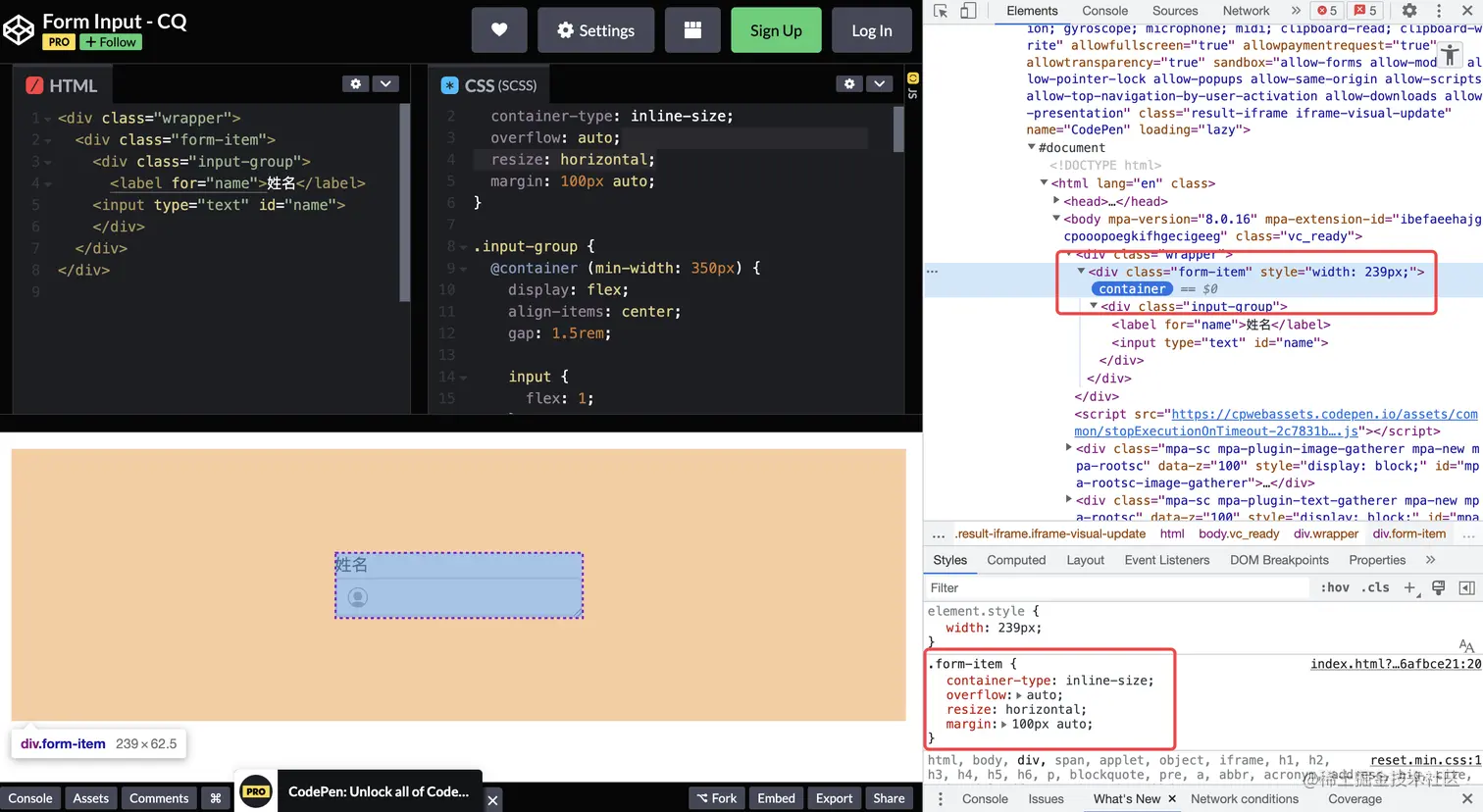使用容器查询完美实现了预期效果!