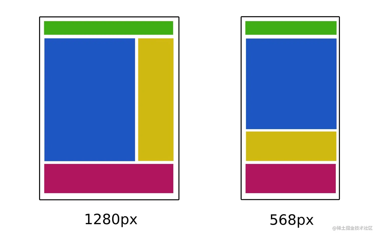 这在CSS 中有多种实现方法,最常见的方法如下所示。我们需要创建一个基础组件,然后对其进行媒体查询: