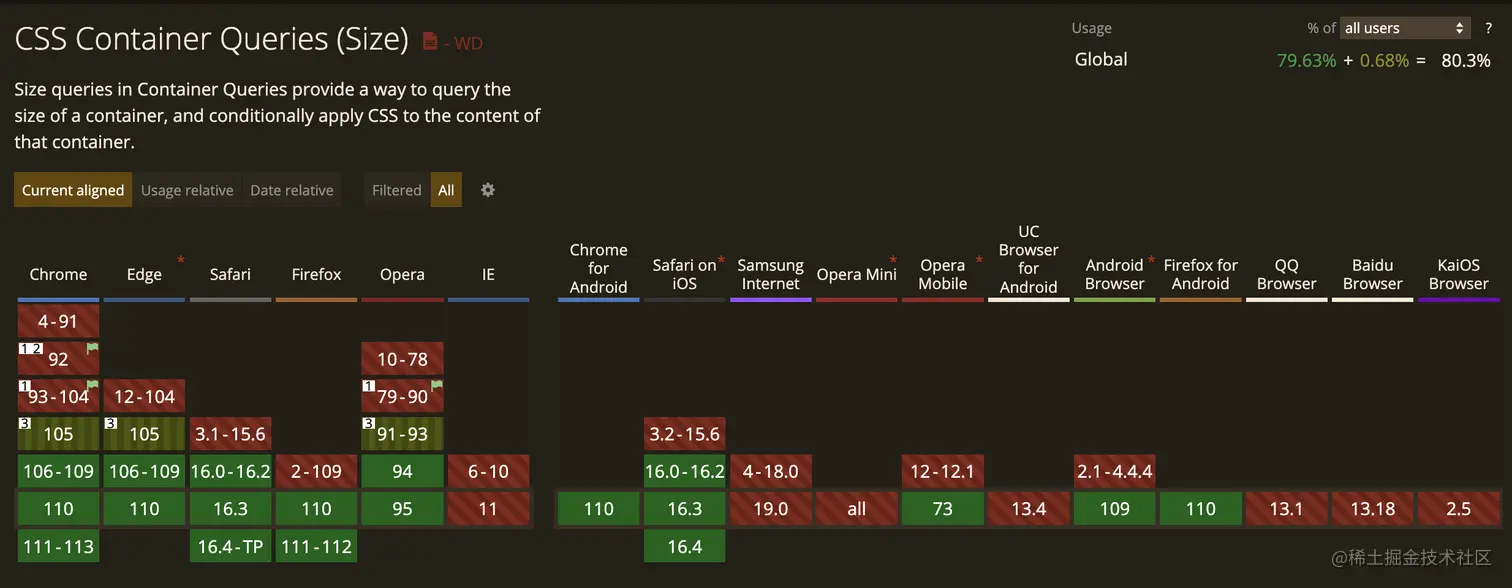 近期,主流浏览器终于都支持了 CSS 容器查询功能: