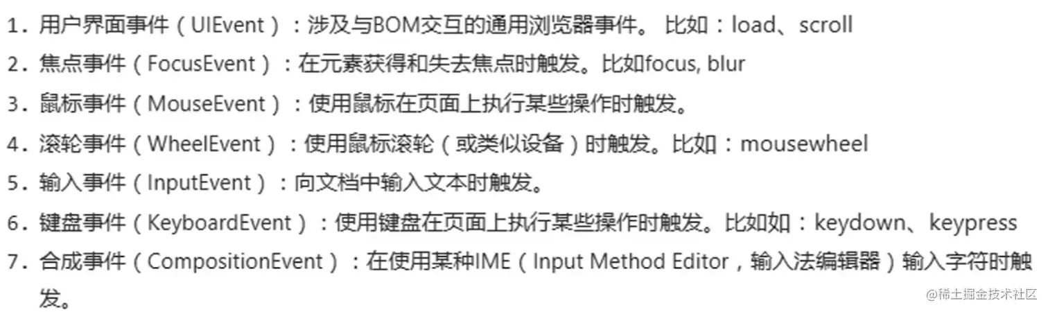 - DOM3 Events 在 DOM2 Events 基础上重新定义了事件,并增加了新的事件类型