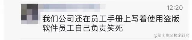 企业是不能以员工个人行为来推脱盗版软件的责任问题,一个岗位需要什么硬件,什么软件,必须是知道的,不能说你不懂技术就知道这些,那不可能的,如果这样说得过去,你甚至说你不懂法律,不知者不罪。就如我上面对话上说的,如果员工不跟你要求买社保,你就可以说自己不知道需要为员工买社保了吗?那只能跟法官说了。