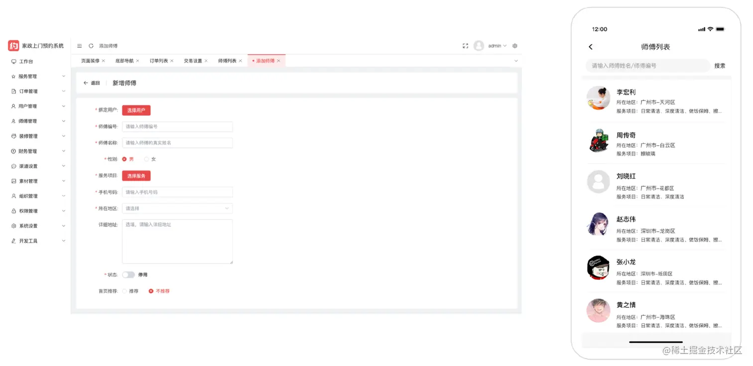 师傅管理,录入师傅信息,只有师傅才有核销订单的权限