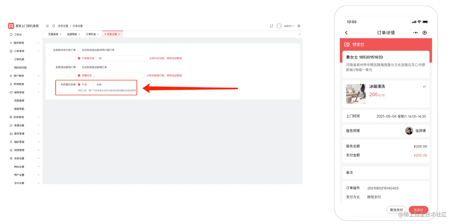 开启系统随机派单,用户下单之后系统会在符合条件的情况下随机安排师傅上门服务