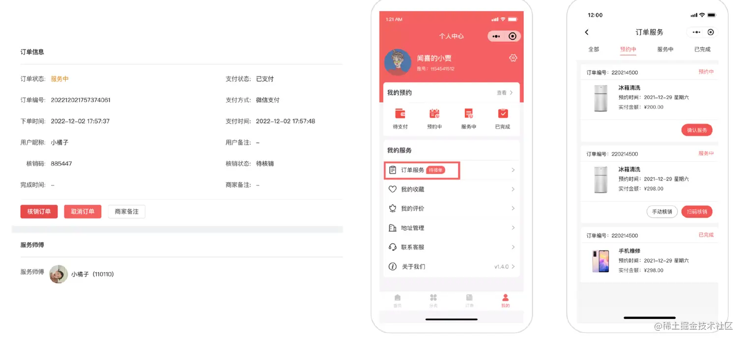 核销订单有2种:1,在师傅端核销(后台要把用户设置成为师傅且在个人中心中添加订单服务的菜单)2,在后台进行核销