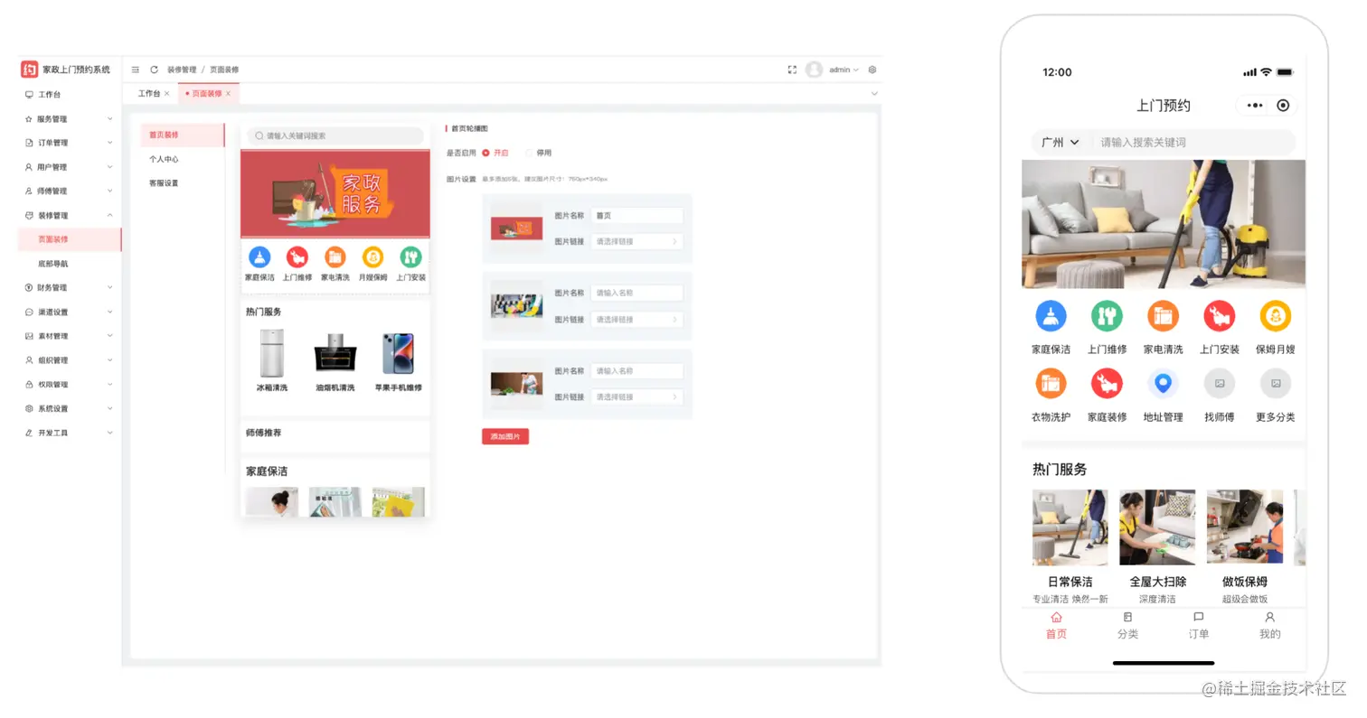 likeadmin上门家政系统是基于likeadmin通用管理后台开发的,提供全部前后无加密源代码,拥有强大的地图定位,在线预约、系统派单、后台派单、下单支持、核销订单等功能模块,用户端和师傅端完美融合,随时随地都能接单;可自定义预约时间段,无需排队,降低实际成本;全方位满足用户的需求,此系统现在有PHP、和Java两个版本,方便选择使用。