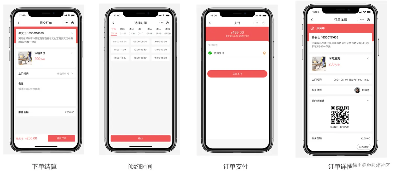 流畅的下单流程,通过线上预约,选择上门服务时间,在线下单并支付即可