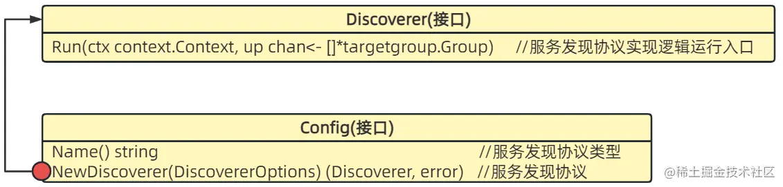 provider:provider是对Discoverer的封装,不同服务发现协议都会实现Config接口,其中NewDiscoverer方法就是创建Discoverer
