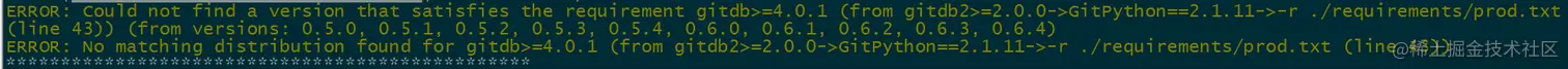 修改./requiremnets/prod.txt中的GitPython==2.1.11改为2.1.15