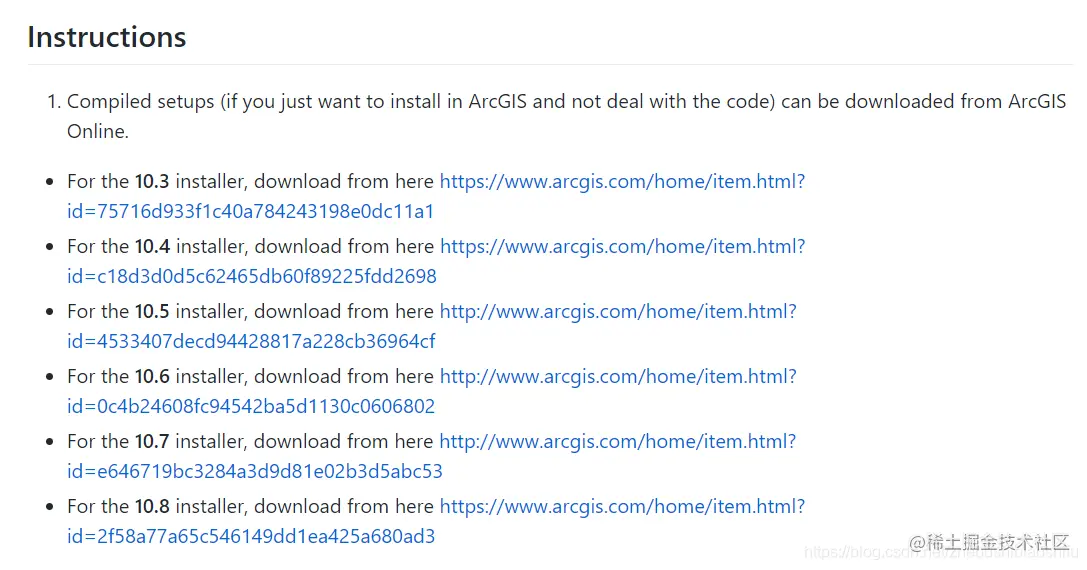 首先,我们进入ArcGIS Editor for OpenStreetMap的GitHub主页,并依据自己的ArcMap软件版本进入不同的下载页面。当然,这里有一点需要注意:不知道为什么官方没有将10.2.X版本ArcMap对应的下载地址列出,如果大家需要10.2.X版本的,可以直接点击这里下载,这里也是这一插件的官方下载网站。
