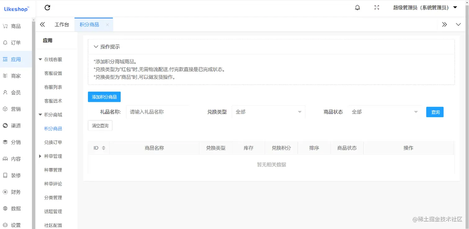 需要设置积分兑换的规则等,让用户了解怎样获取积分、兑换商品,订单管理可以查看所有用户的订单,并进行管理