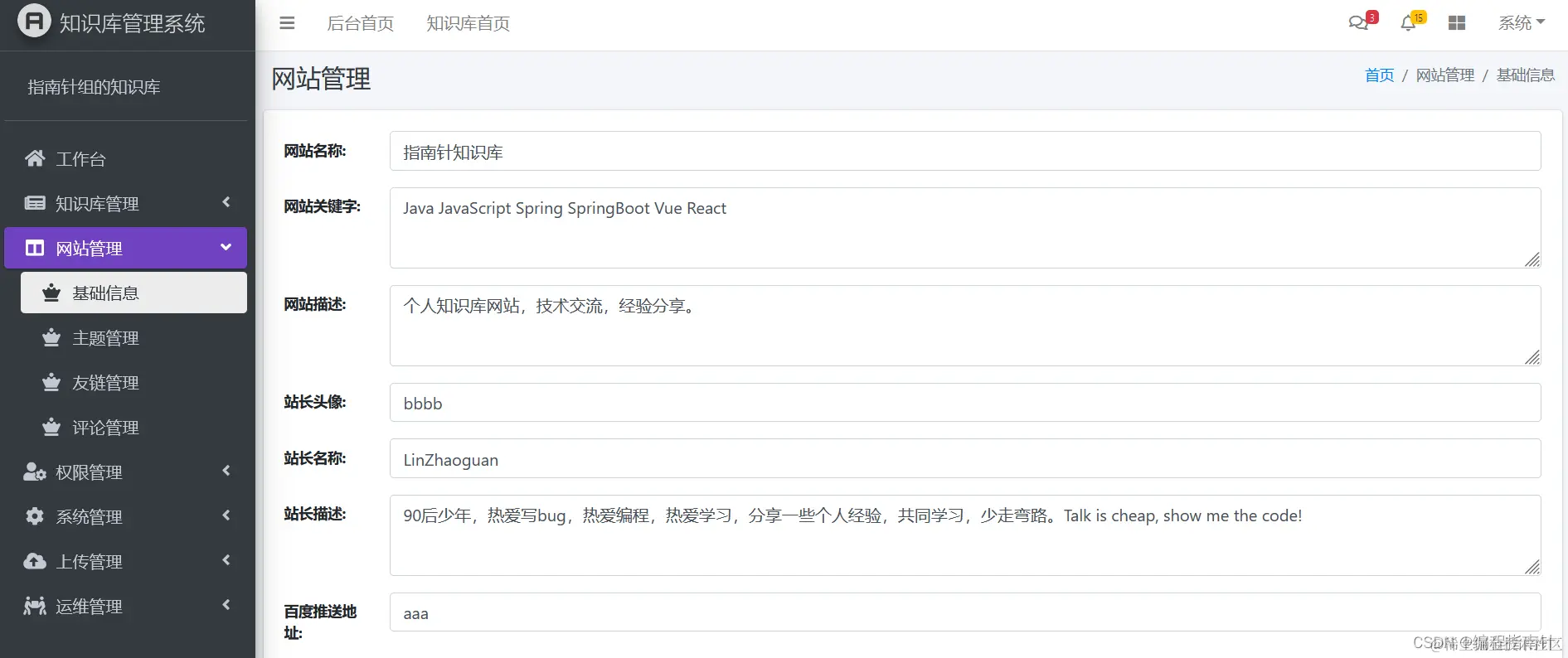 网站基础信息管理