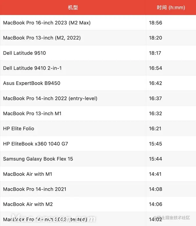 MacBook Pro(M1):16 小时 32 分钟