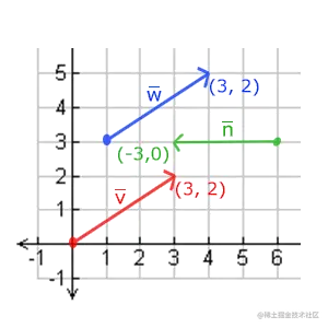 下面你会看到3个向量,每个向量在2D图像中都用一个箭头(x, y)表示。你可以把这些2D向量当做z坐标为0的3D向量。由于向量表示的是方向,起始于何处并不会改变它的值。下图我们可以看到向量v ˉ \color{red}{\bar{v}} v ˉ