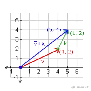 向量v = (4, 2)和k = (1, 2)可以直观地表示为: