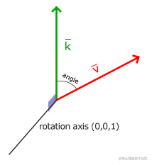 在3D空间中旋转需要定义一个角和一个旋转轴(Rotation Axis)。物体会沿着给定的旋转轴旋转特定角度。如果你想要更形象化的感受,可以试试向下看着一个特定的旋转轴,同时将你的头部旋转一定角度。当2D向量在3D空间中旋转时,我们把旋转轴设为z轴(尝试想象这种情况)。