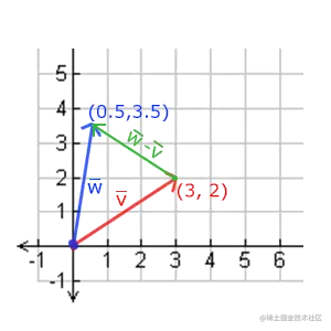 两个向量的相减会得到这两个向量指向位置的差。这在我们想要获取两点的差会非常有用。