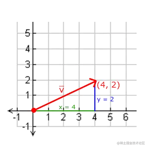 例子中向量(4, 2)的长度等于: