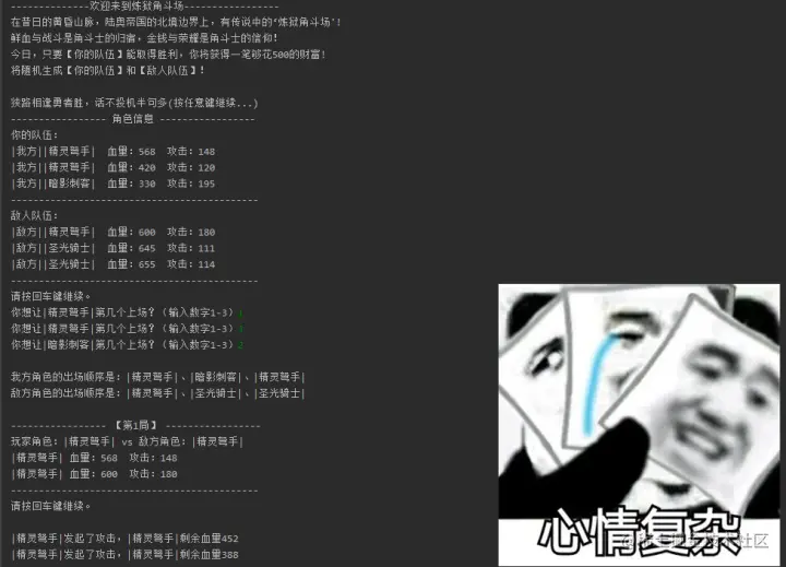欢迎大家来到炼狱角斗场(Python代码文字版本的小游戏哈)