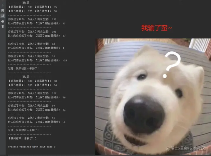 print('【最终结果:玩家输了!】')