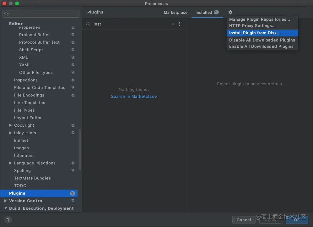 和其他插件的安装一样,Android Studio可以通过Plugin Marketplace中查找插件,如下(图中由于我已经安装成功):