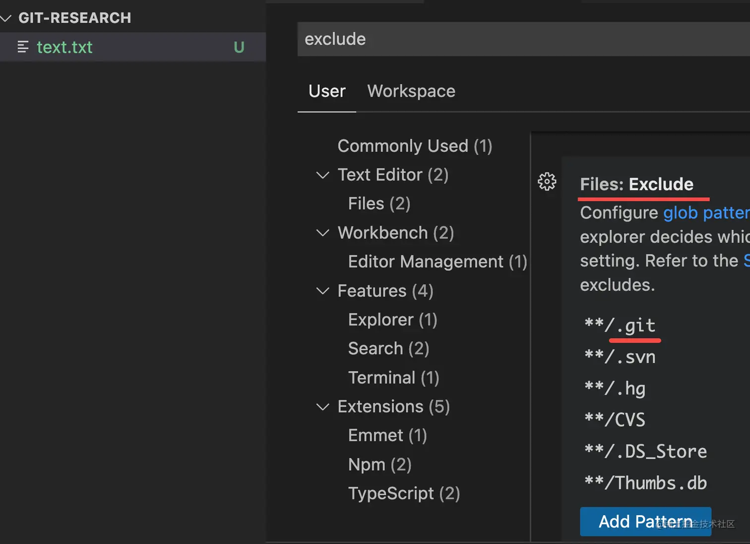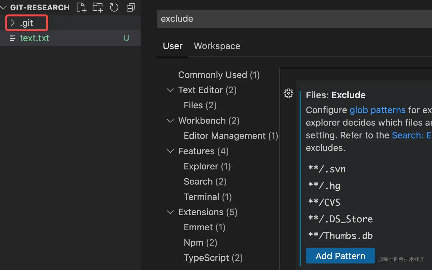 默认隐藏,但只要你把这个 exclude 配置删掉,就显示出来了: