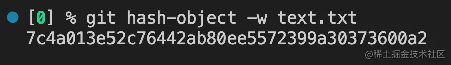 然后你就会发现它返回了一个 hash,并且 objects 目录下多了一个 object: