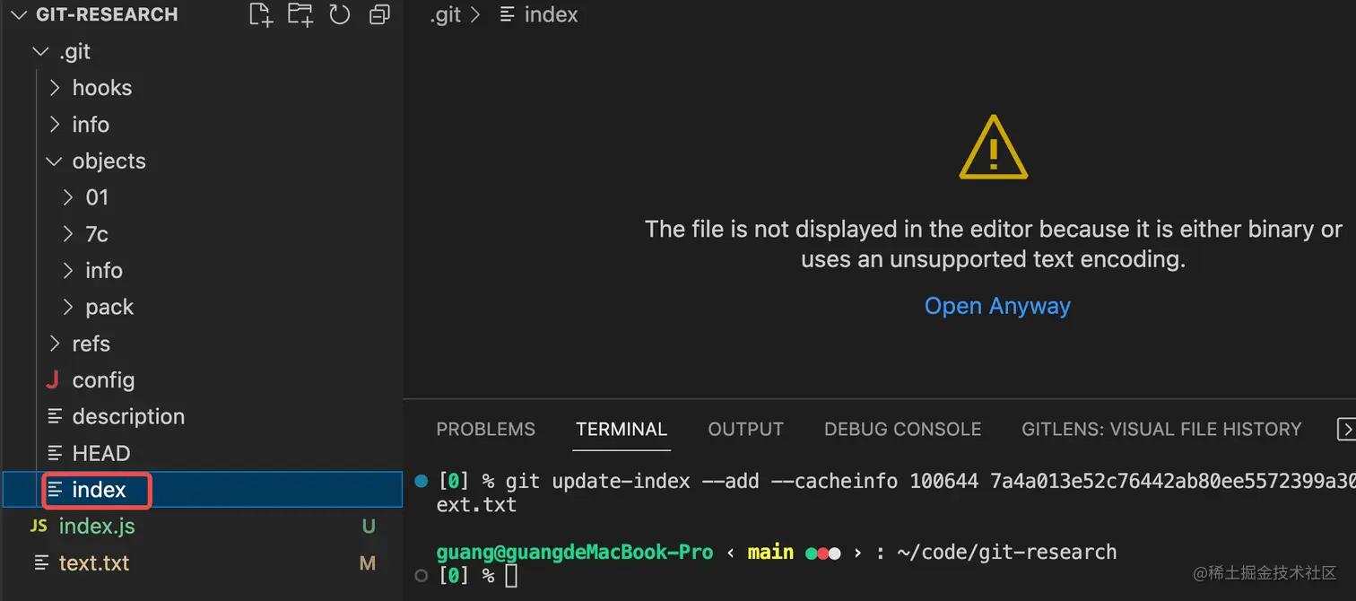 添加之后就可以看到 .git/index 这个文件了,暂存区的内容就是放在这: