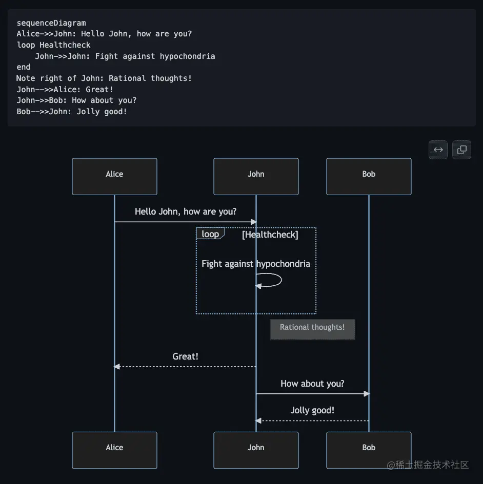 用类似 Markdown 的形式将文本生成流程图、序列图。