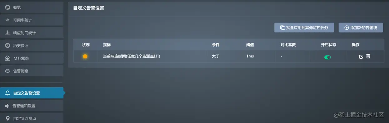 - 在告警指标列表右上侧单击批量应用到其他监控任务。