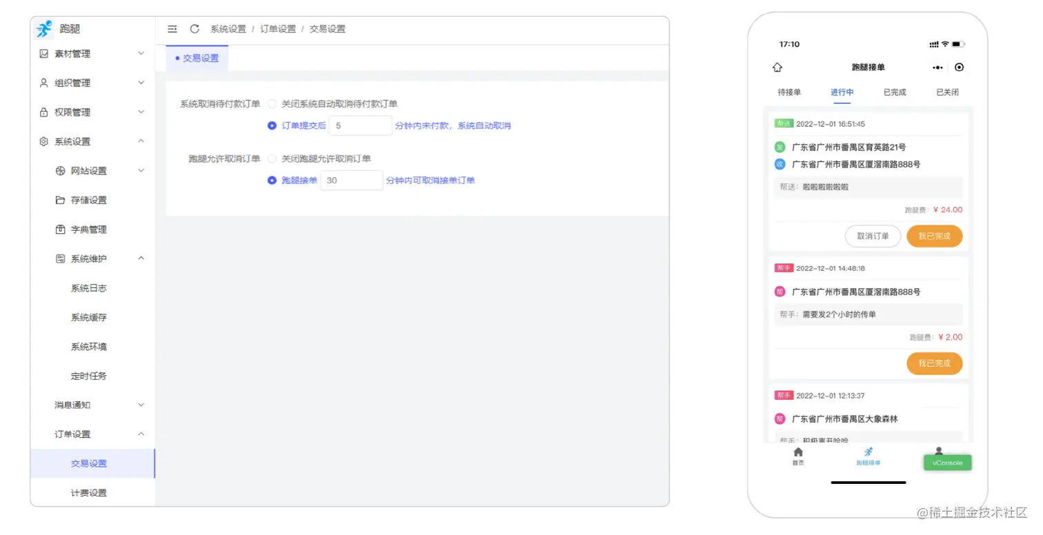 此系统提供全部前后台无加密源代码,拥有强大的地图定位、在线下单、帮我送、帮我取、帮我买、全能帮手等功能模块,用户端和接单端完美融合,随时随地都能接单;可自定义跑腿计费设置、跑腿配送时间,降低用户等待的时长。