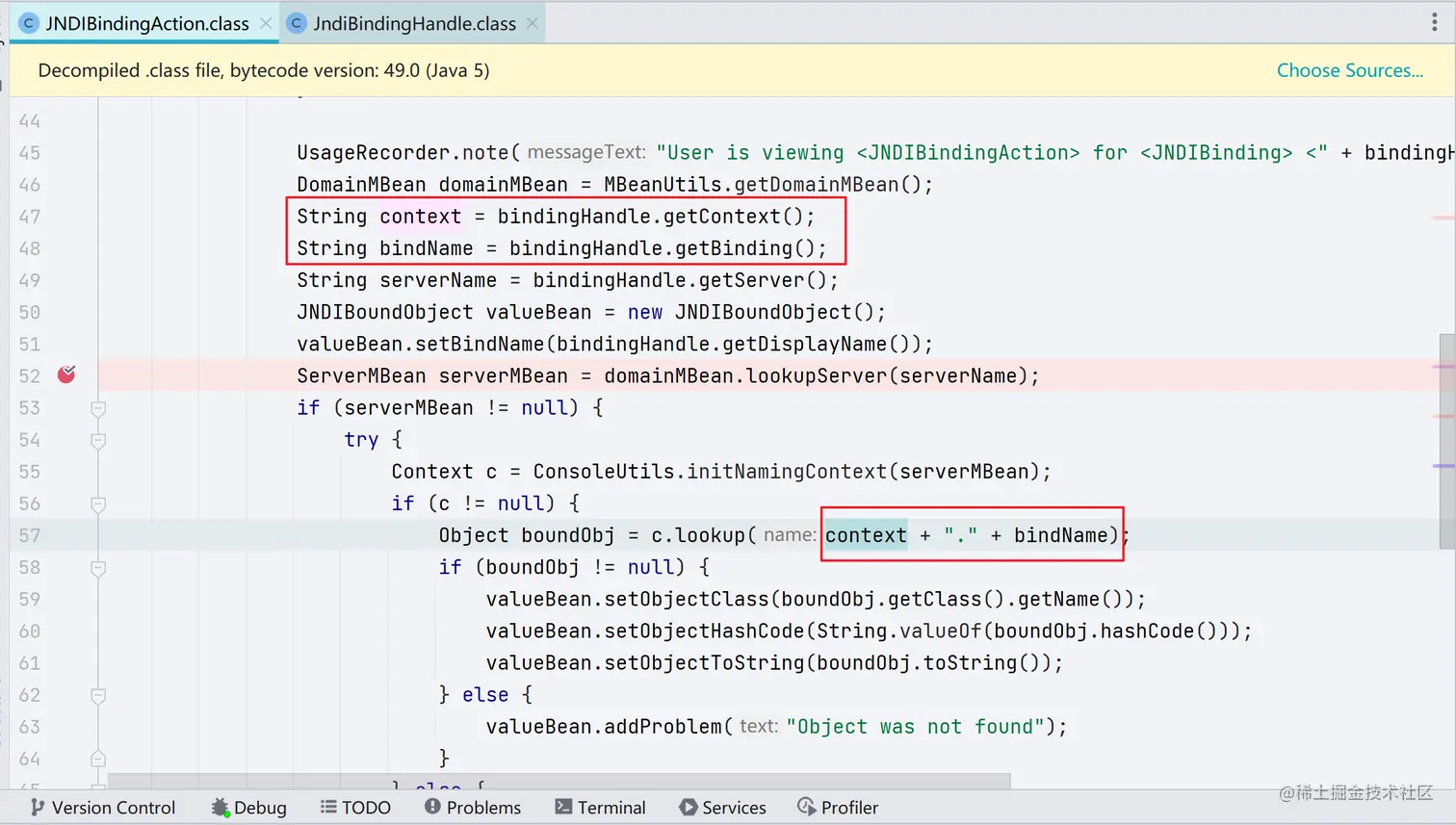 主要逻辑就是在讲,以 ; 分隔,如此一来,我们就可控 context 与 binding,可以进行 jndi 注入