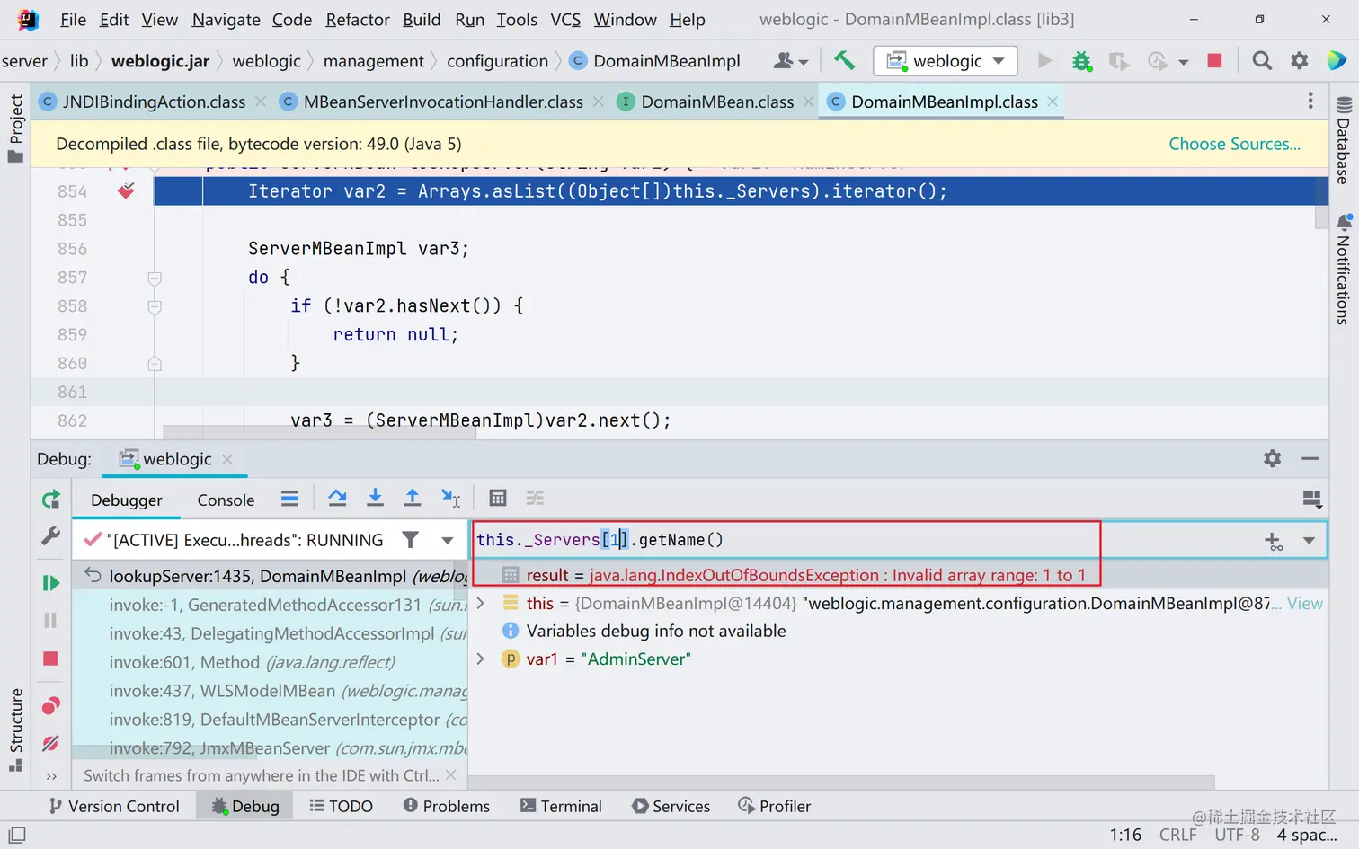 通过调试得到 var2 的值为 AdminServer,这里没有其他的值了,原因如图