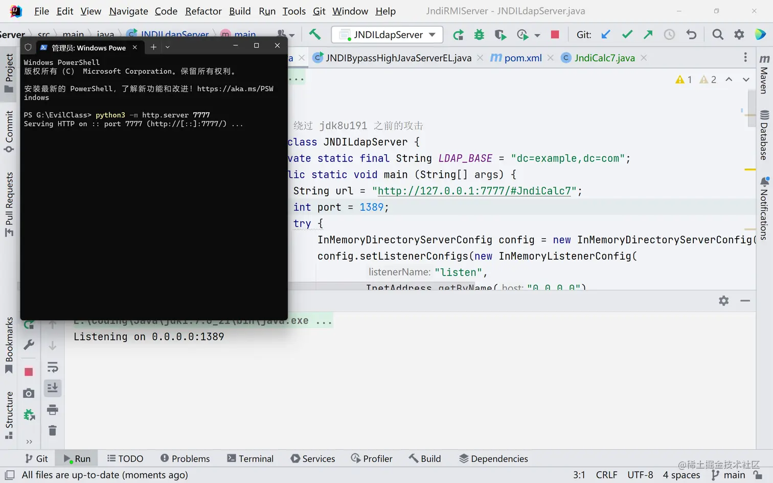 我本地开启了一个 JNDI 的 Evil Class 和 Server