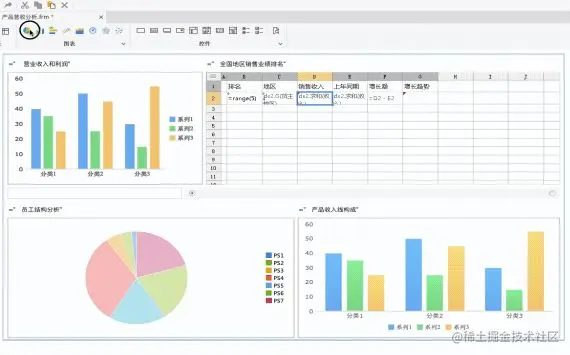 FineReport这个平台严格意义上是属于报表开发平台,但实际上也可以进行大屏可视化的开发,它的操作界面也比较简洁,通过拖拽就可以实现编辑。
