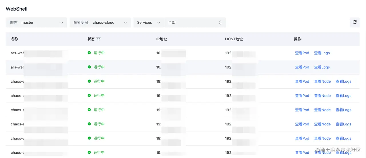 上图是 WebShell 管理的部分截图,通常用户注入故障后,故障的有效性和指标,或者产生的日志,需要登录机器查看和操作。平台支持通过 WebShell 管理集群服务的 Pod、Node 节点,并查看对应的日志信息。可以快速验证故障是否生效,方便定位问题。