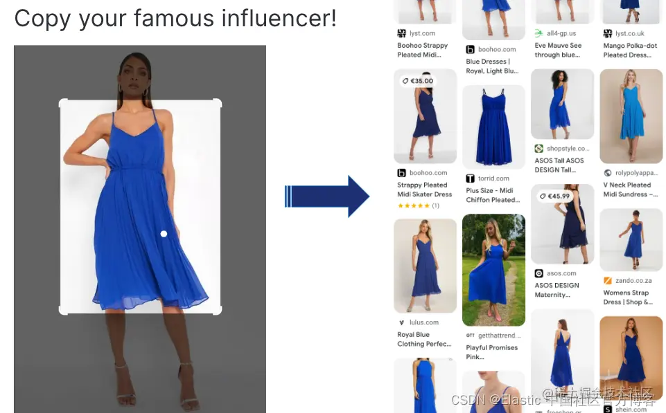 相似性搜索如何推动创新? 在我们的第一个示例中,用户可以截取屏幕截图并搜索以查找最喜欢的名人的着装。