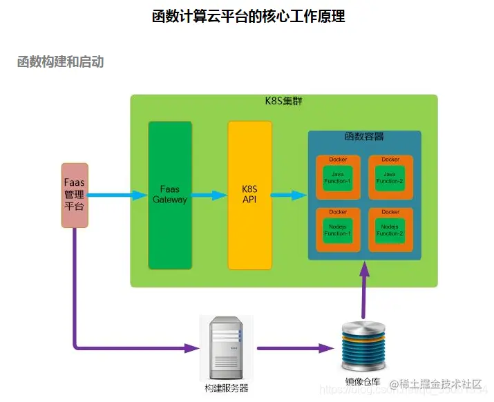 “Functions as a Service”即FaaS函数即服务(功能即服务),FaaS 是Serverless 的子集,也是实现整个应用 Serverless 化的核心服务。