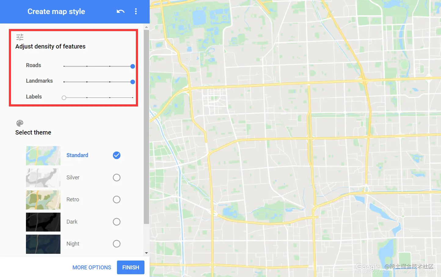 随后,通过“MORE OPTIONS”选项对地图设计加以更细致的调整。