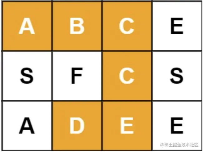 单词必须按照字母顺序,通过相邻的单元格内的字母构成,其中**“相邻”**单元格是那些水平相邻或垂直相邻的单元格。同一个单元格内的字母不允许被重复使用。