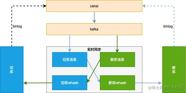 平滑扩容的核心是全量同步和实时双向同步,工程上有不少细节。