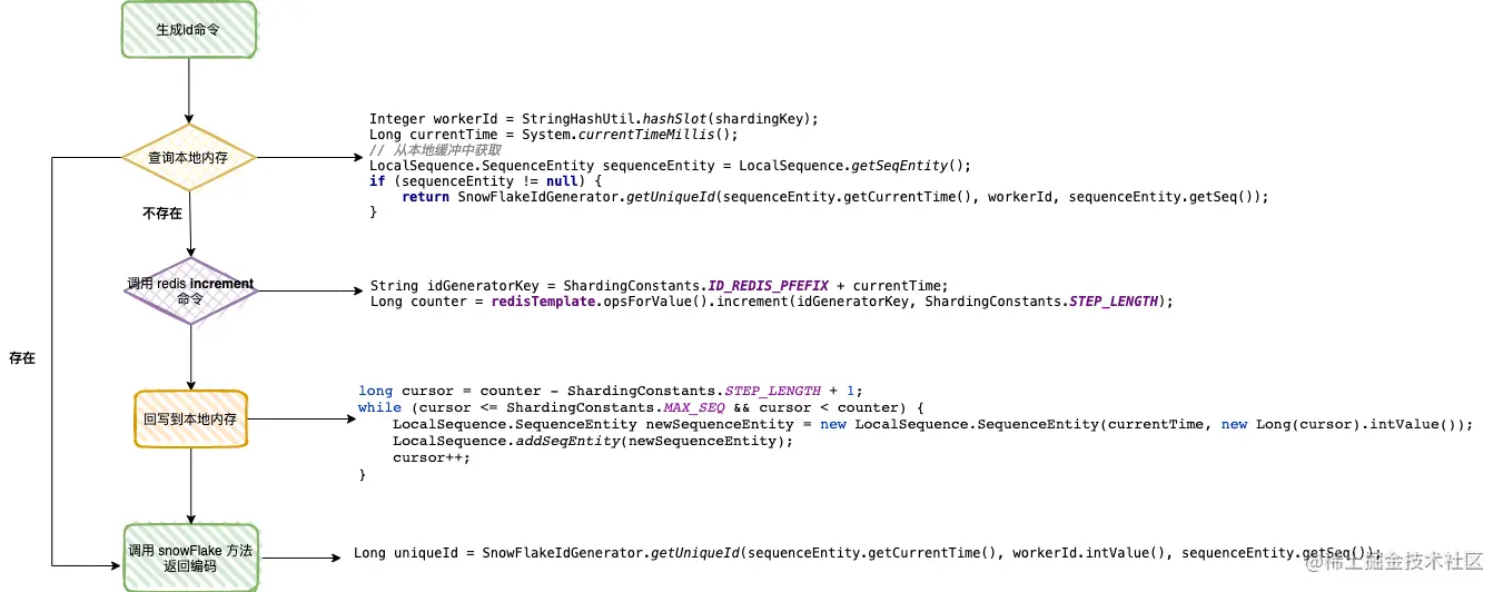 基因法是指在订单 ID 中携带企业用户编号信息,我们可以在创建订单 order_id 时使用雪花算法,然后将 slot 的值保存在 10位工作机器 ID 里。