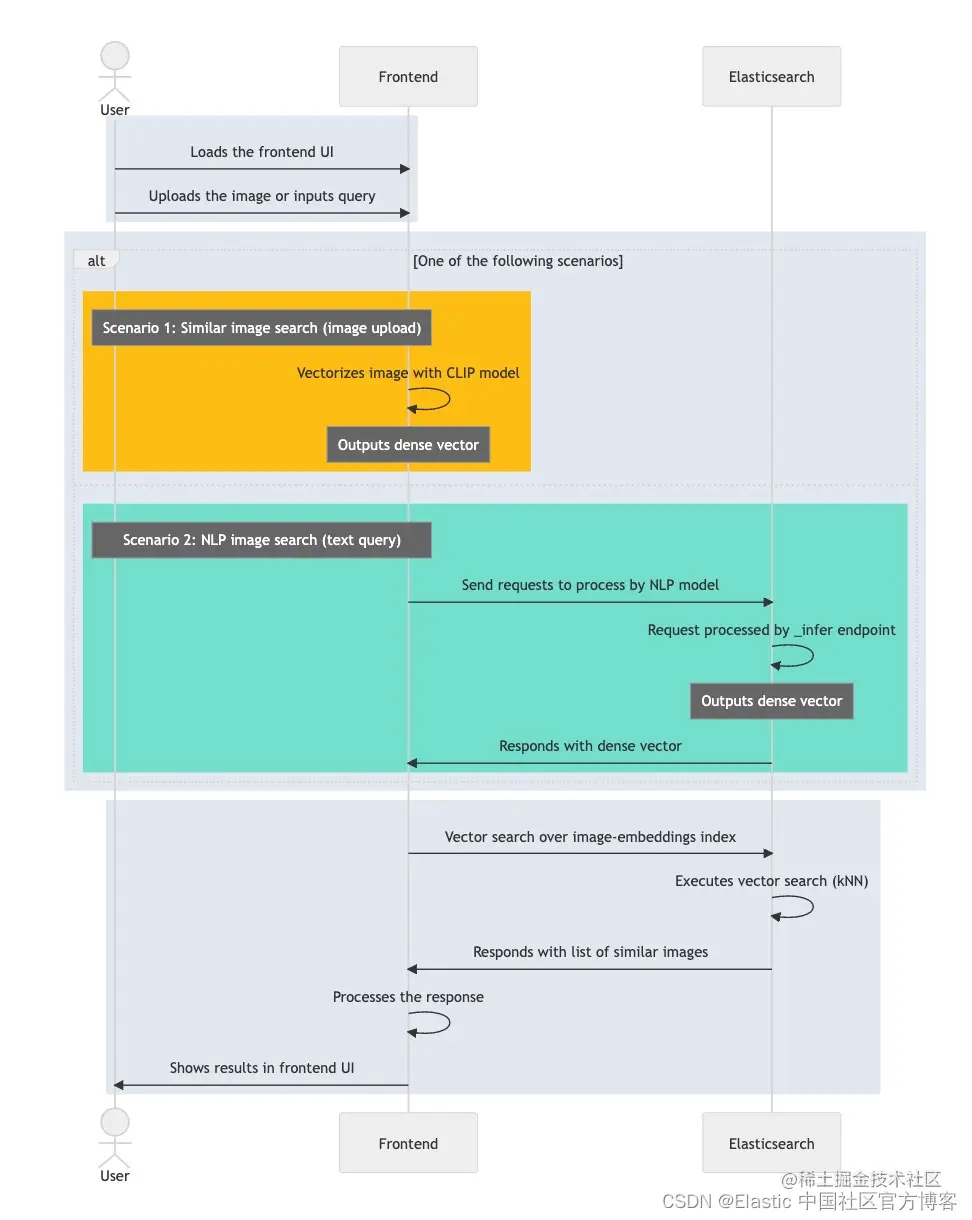 尽管你使用不同的模式来制定查询,但两者都是在底层矢量搜索中使用相同的步骤序列执行的,即对由其嵌入(作为 “dense” 矢量)表示的文档使用查询 (kNN)。 我们在前面的部分中描述了使 Elasticsearch 能够对大型图像数据集执行非常快速和可扩展的矢量搜索的机制。 请参阅此文档以了解有关在 Elastic 中调整 kNN 搜索以提高效率的更多信息。