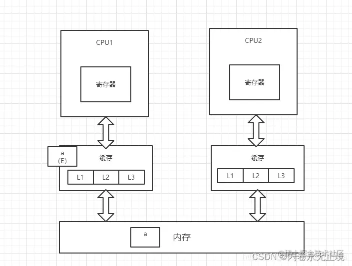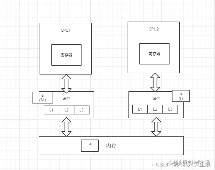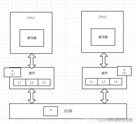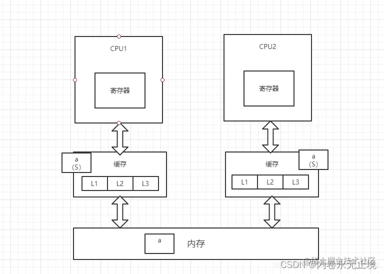 2每个线程都有一个私有的本地工作内存,本地工作内存中存储了该线程用来读I写共享变量的副本(从硬件角度来说就是CPU的缓存,比如寄存器、L1、L2、L3缓存等)