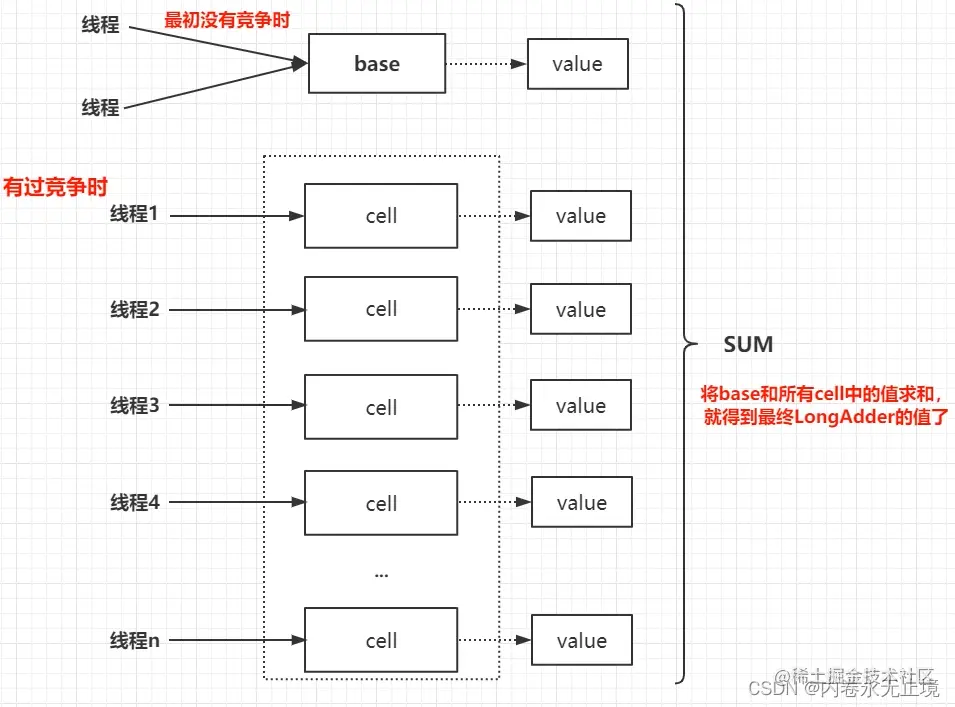 1.LongAdder是一种以空间换时间的解决方案,其在高并发,竞争大的情况下性能更优。