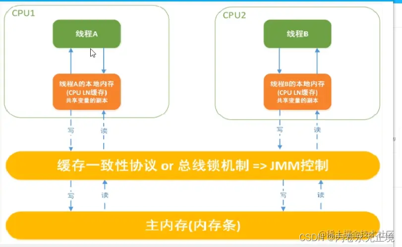1线程之间的共享变量存储在主内存中(从硬件角度来说就是内存条)