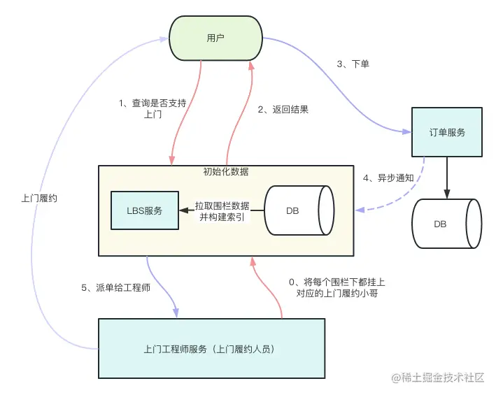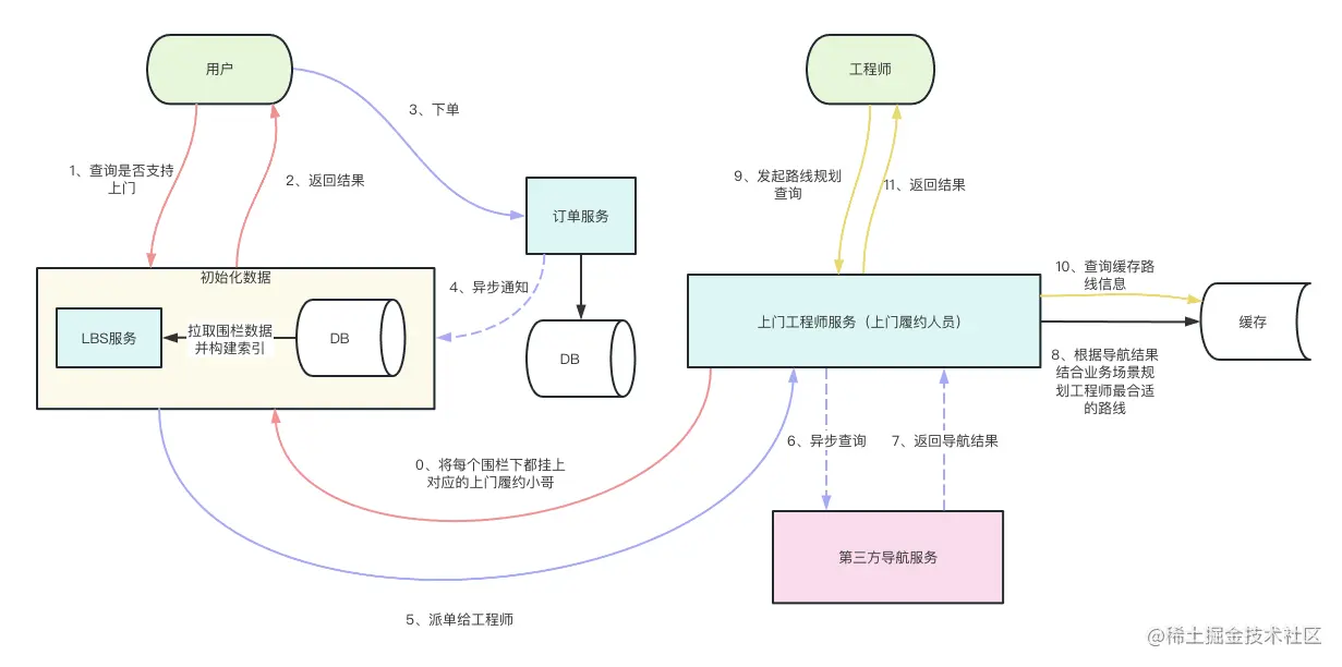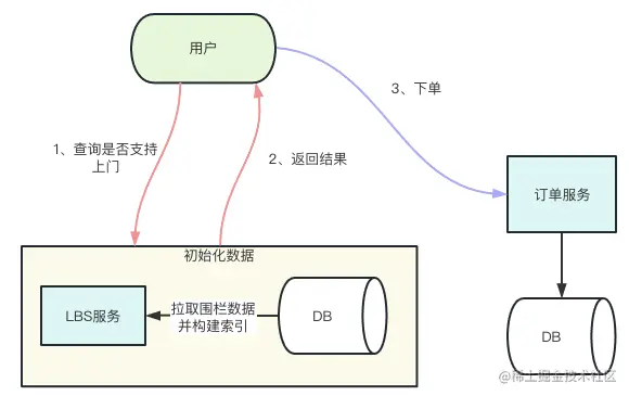 简单来说,就是工程师定时上报地址经纬度,存入ES。用户下单后,将订单地址的经纬度也存入ES,查询的时候再直接使用ES提供的GEO查询范围内的数据。