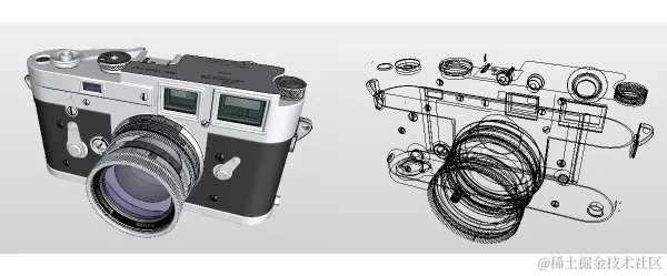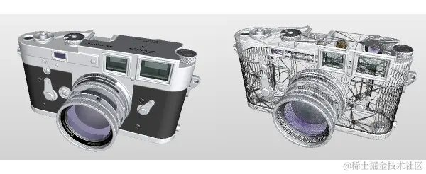 (左)固体模式。(右)线框模式。